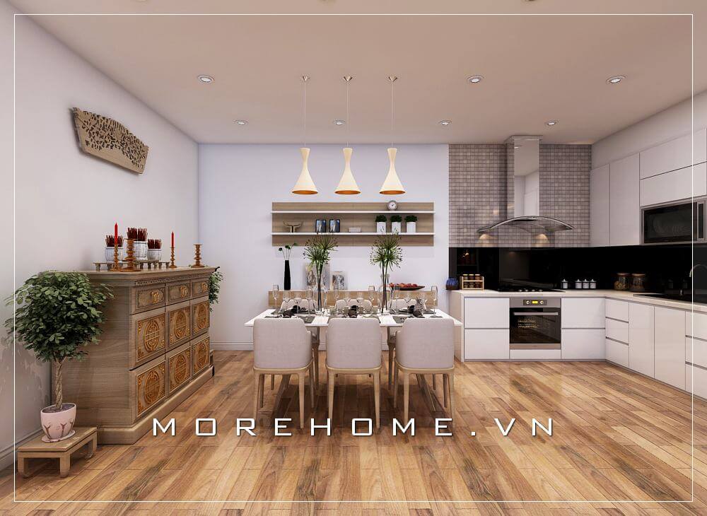 Thiết kế nội thất phòng bếp chung cư hiện đại, đơn giản