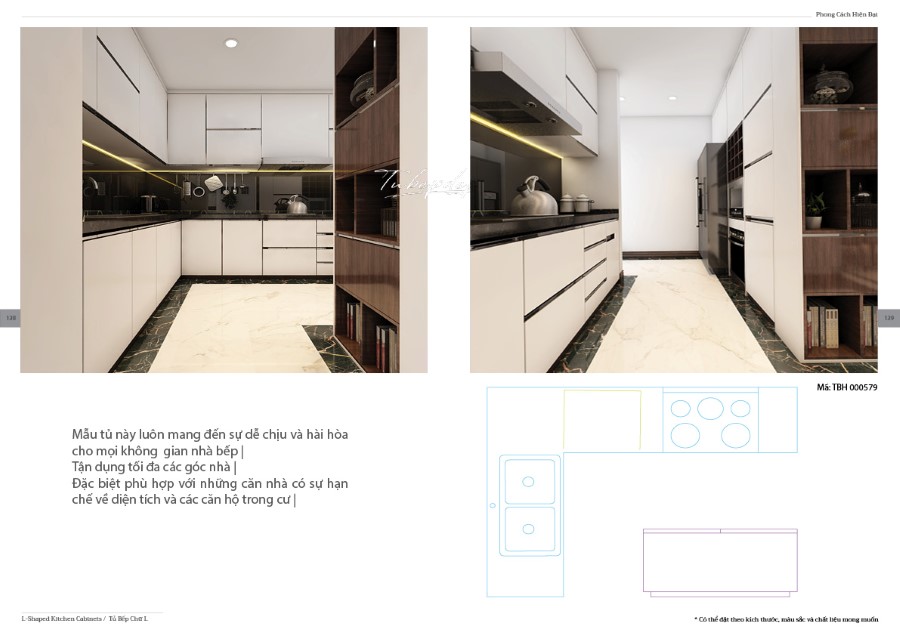 Mẫu thiết kế phòng bếp cho chung cư, nhà phố, biệt thự bằng gỗ công nghiệp phong cách hiện đại