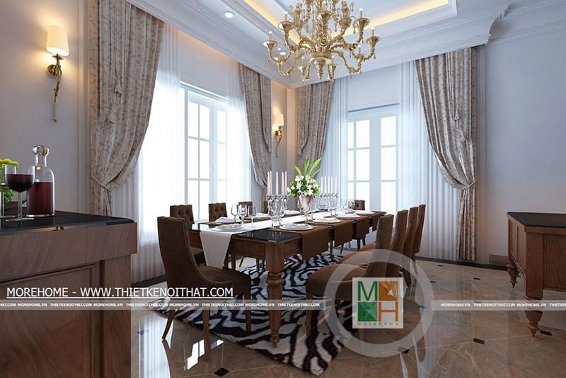 Thiết kế nội thất phòng ăn gỗ tự nhiên hiện đại, sang trọng cho nhà biệt thự