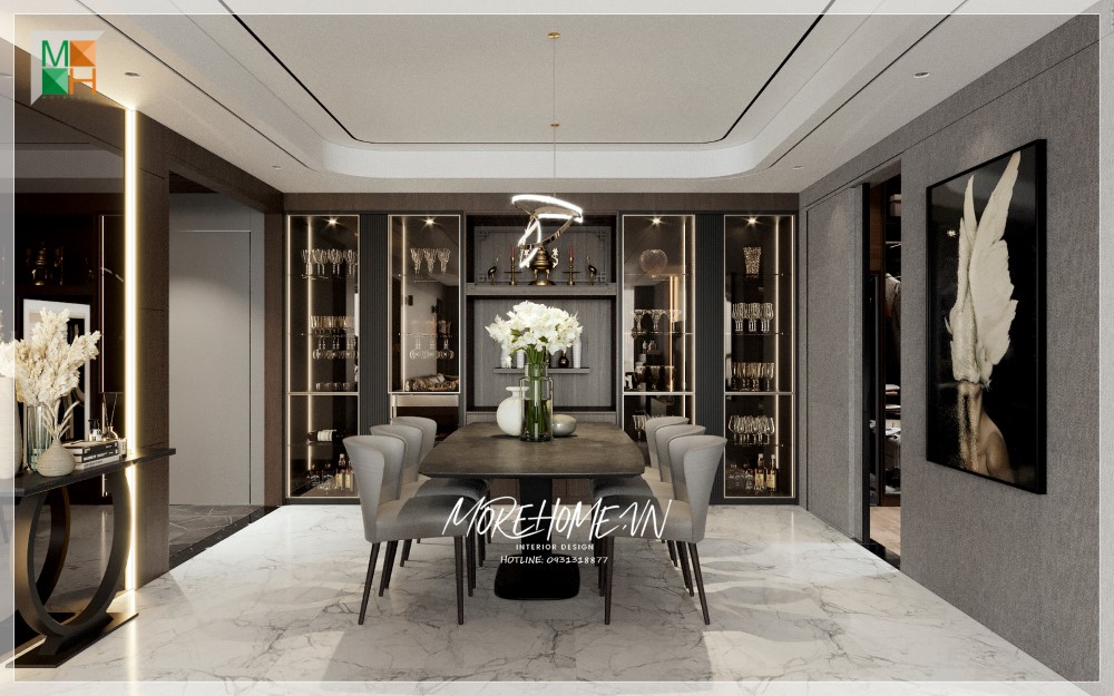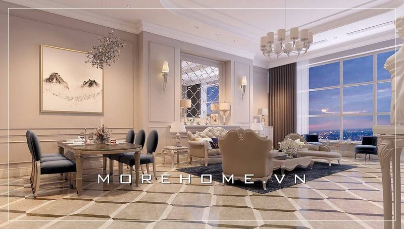 Bộ bàn ghế ăn mang phong cách cổ điển để tạo nên sự sang trọng và đẳng cấp cho căn hộ Penthouse.