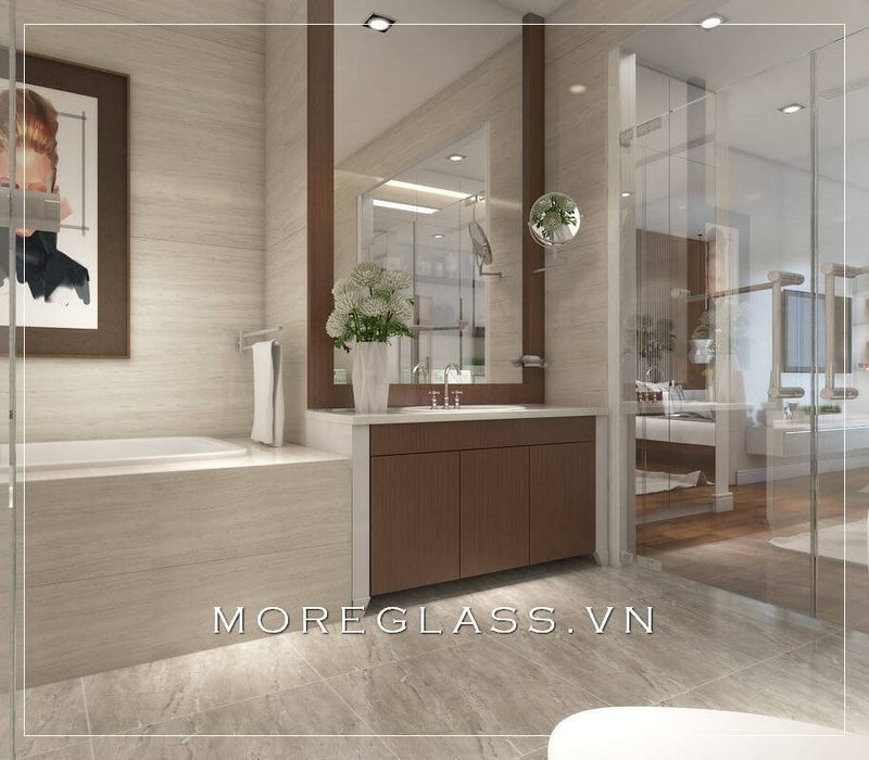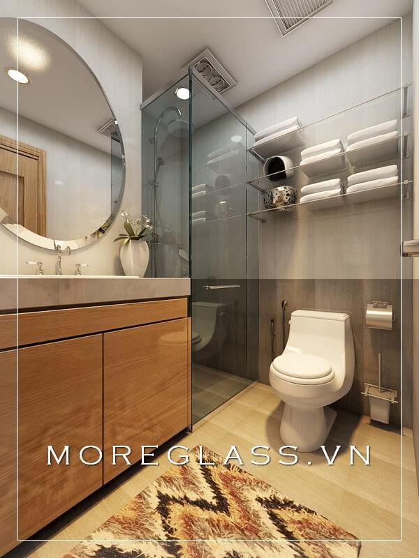 Mẫu phòng tắm được làm từ kính cường lực để phù hợp với căn hộ chung cư cao cấp.