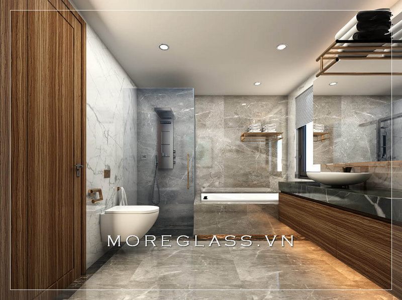 Mẫu thiết kế phòng tắm của căn hộ cao cấp có vẻ đẹp quý phái và sang trọng.