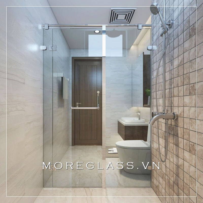 Để tận dụng được tối đa không gian trong phòng tắm nhỏ, sử dụng vách tắm kính cường lực để ngăn nước hắt ra ngoài và thiết kế nội thất phù hợp.
