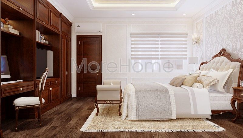 Giường ngủ gỗ óc chó được thiết kế theo phong cách tân cổ điển sẽ góp phần tạo nên sự đẹp và sang trọng trong không gian căn phòng.